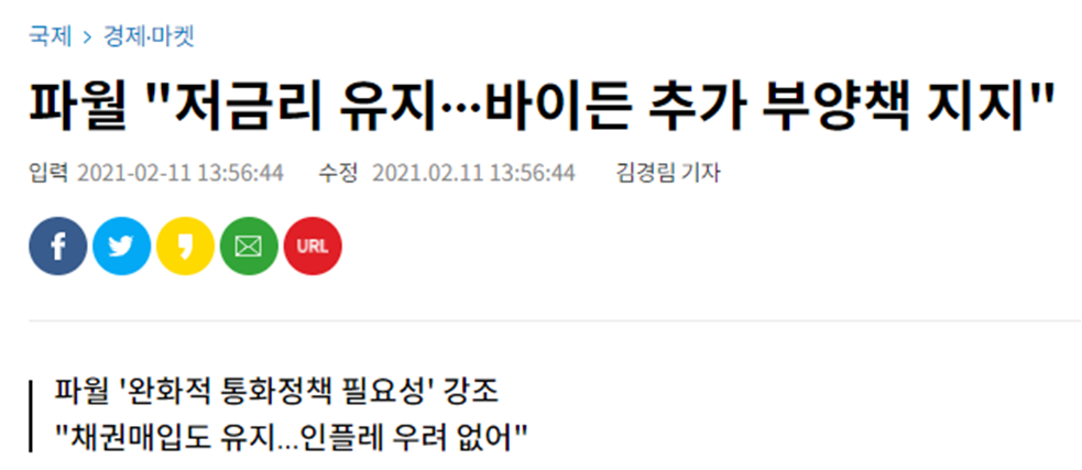 바이든은 부양책으로 연준은 제로금리로 경제 정상화 지원