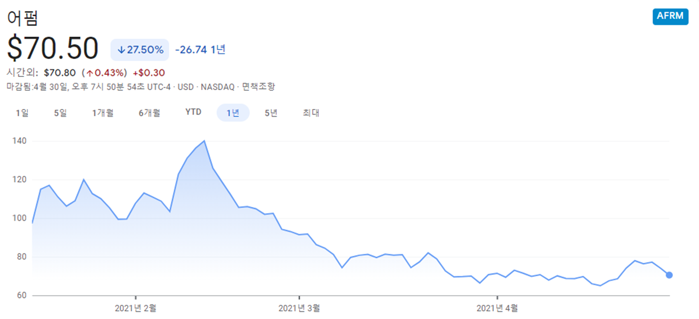 ['21_4월 마지막주] 미국주식 마감시황 - 월가의 바램, 어펌(affirm)