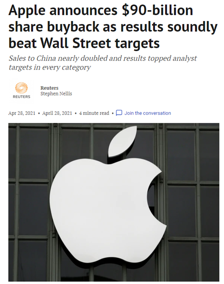 4. 애플 : Raymond James는 애플이 곧 발표할 Air tag를 통해 자사 생태계를 더 강화할 것이라고 전망. Air tags는 대당 $30로 저렴한데 연간 판매량을 고려할 때 매출에 20~25억 달러 가량 영향을 미칠 것으로 분석. 목표주가 →$160