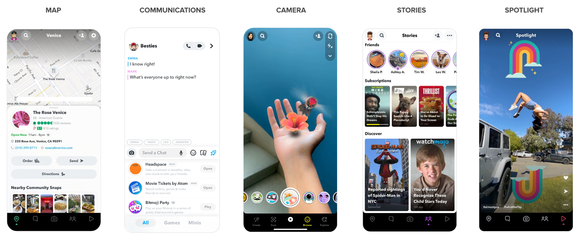 스냅은 여기서 만족하지 않고 자신들의 플랫폼을 더욱 진화시키고 있다. 구글 맵과 같은 맵 서비스에 각종 식당이나 쇼핑 정보 등을 공유하게 하고 있고 자체 콘텐츠를 제작하는 등 동영상 스트리밍 서비스에도 공을 들이고 있다. 게임에도 자신들의 AR 기술을 적용하여 게임 캐릭터에 유저 자신을 대입하게 하는 등 지속적으로 스냅챗 플랫폼안에 사용자가 오래 머무를 수 있는 여러가지 기능을 추가 하고 있다. 이렇게 폭발적 성장이 예상되는 이커머스와 광고 뿐 아니라 수익원을 다양화 함으로서 본격적인 성장기에 진입하고 있는 것이다.