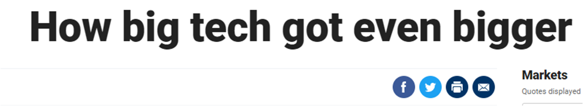 △ 폭스 뉴스에서 애플, 구글, 아마존, 페이스북, 마이크로소프트 등 5개 기업이 어떻게 팬데믹 상황에서 더 크게 성장했는지 간단한 분석기사를 내놓았다. 투자에 좋은 아이디어가 될 것 같아 여기 실어본다.